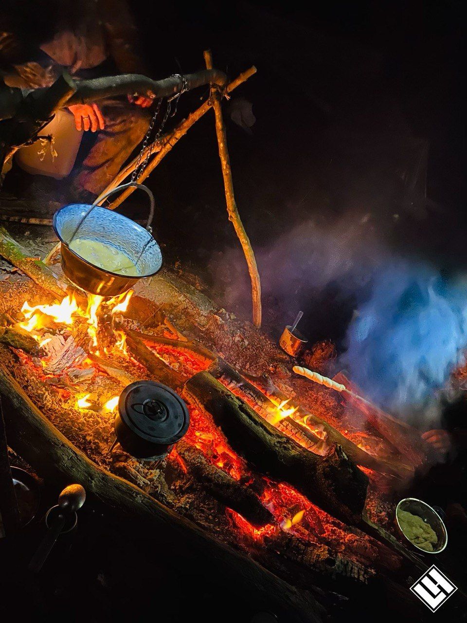 Már sötétben érkeztünk vissza táborhelyünkre, ahol ismét feladatot kapott mindenki. A társaság fiatalabb, főzésben még nem olyan jártas tagjai a vacsora elkészítését kapták feladatul, melyhez egy tyúkot is fel kellett pucolniuk. Ügyesen megbírkóztak a feladattal és végül mindenki jól lakott a tábortűz mellett.